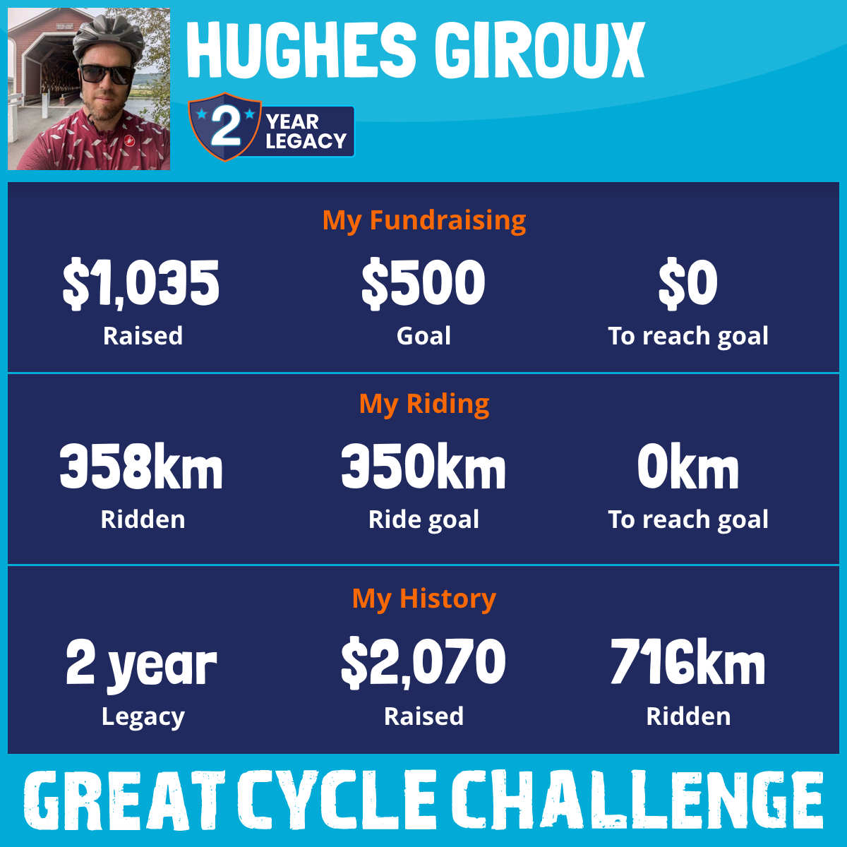 358 km Ridden$1,035 Raised2026