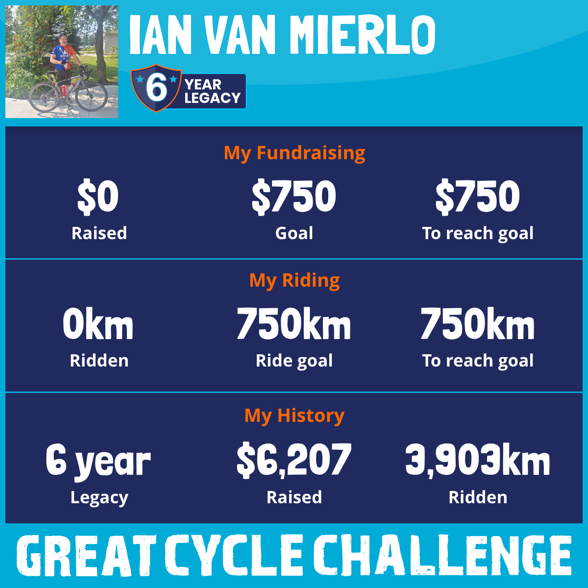 425 km Ridden$1,285 Raised2020