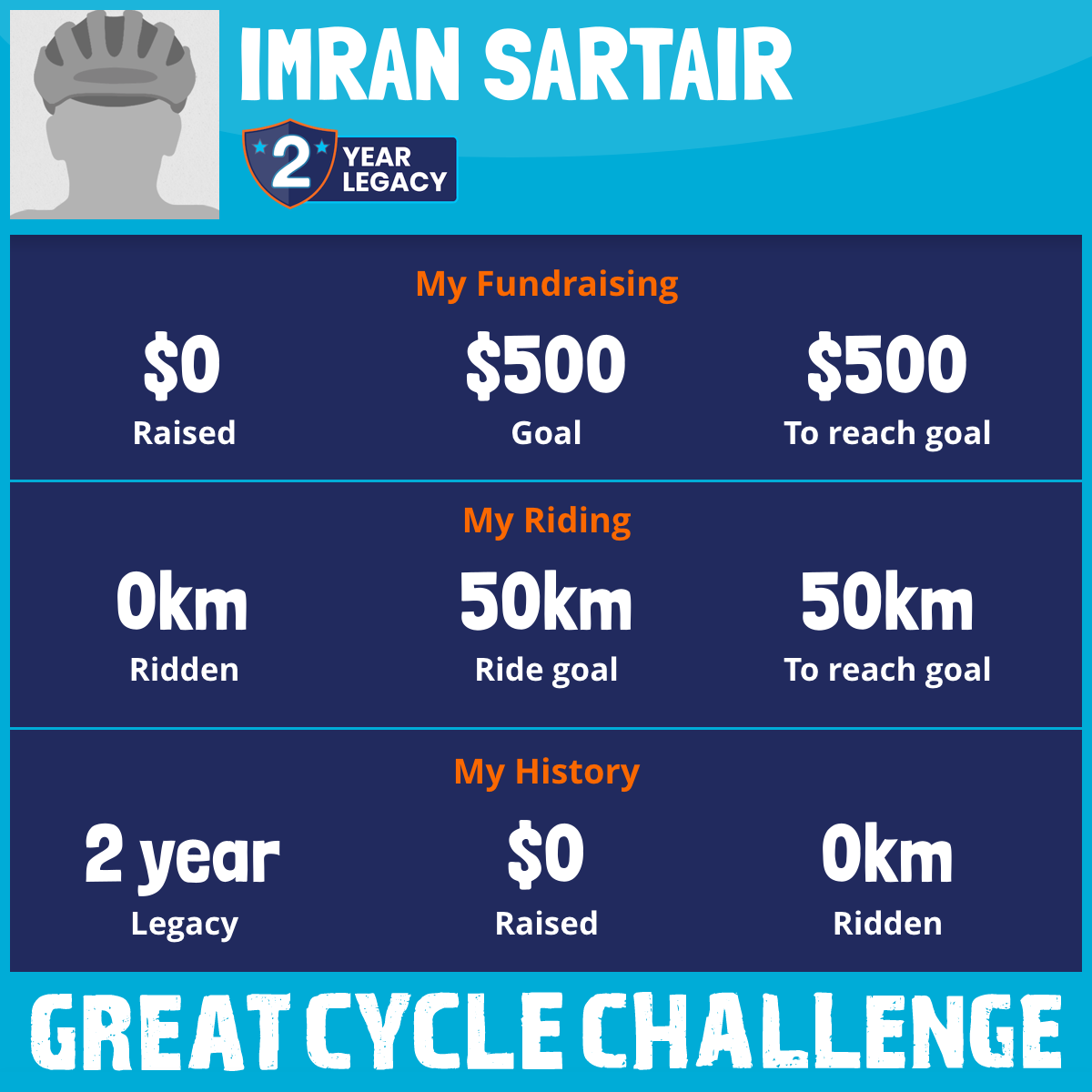 I am riding 50 km in memory of my brother, Khan. Please sponsor me and support my challenge to fight kids' cancer and save little lives.