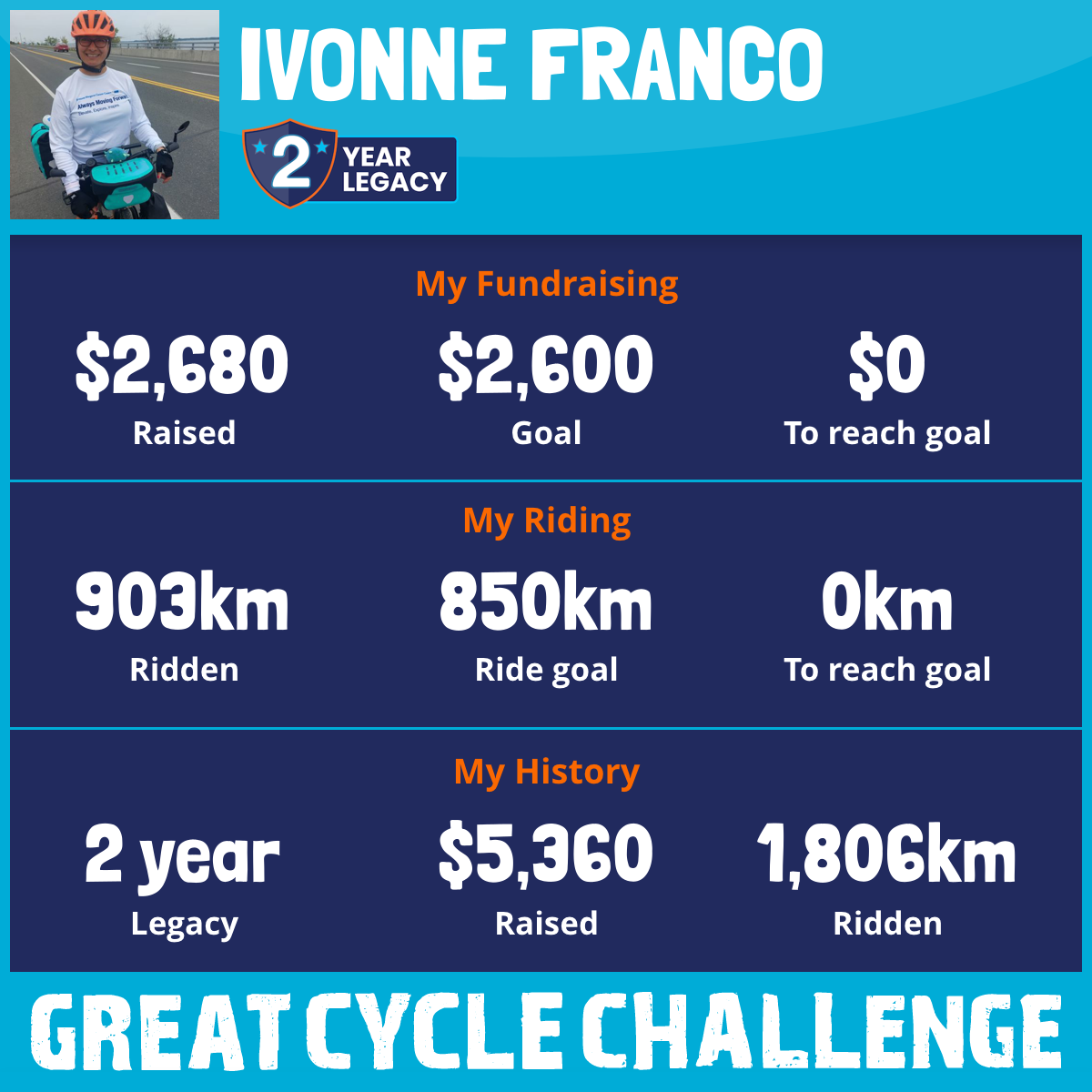 903 km Ridden$2,680 Raised2025