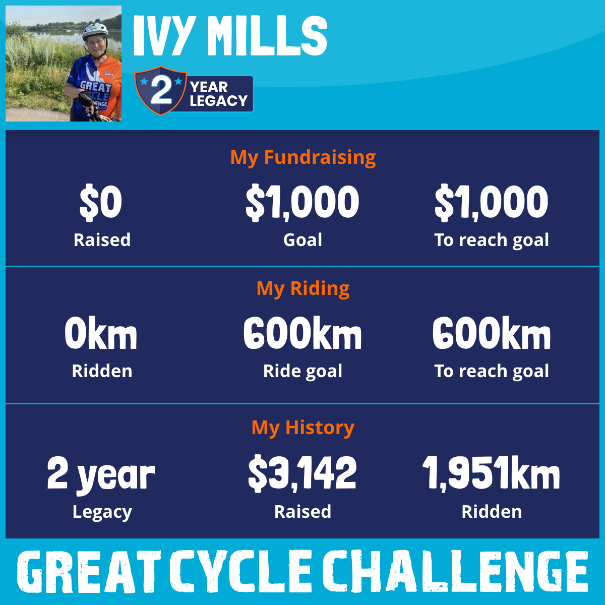 1,951 km Ridden$3,142 Raised2024