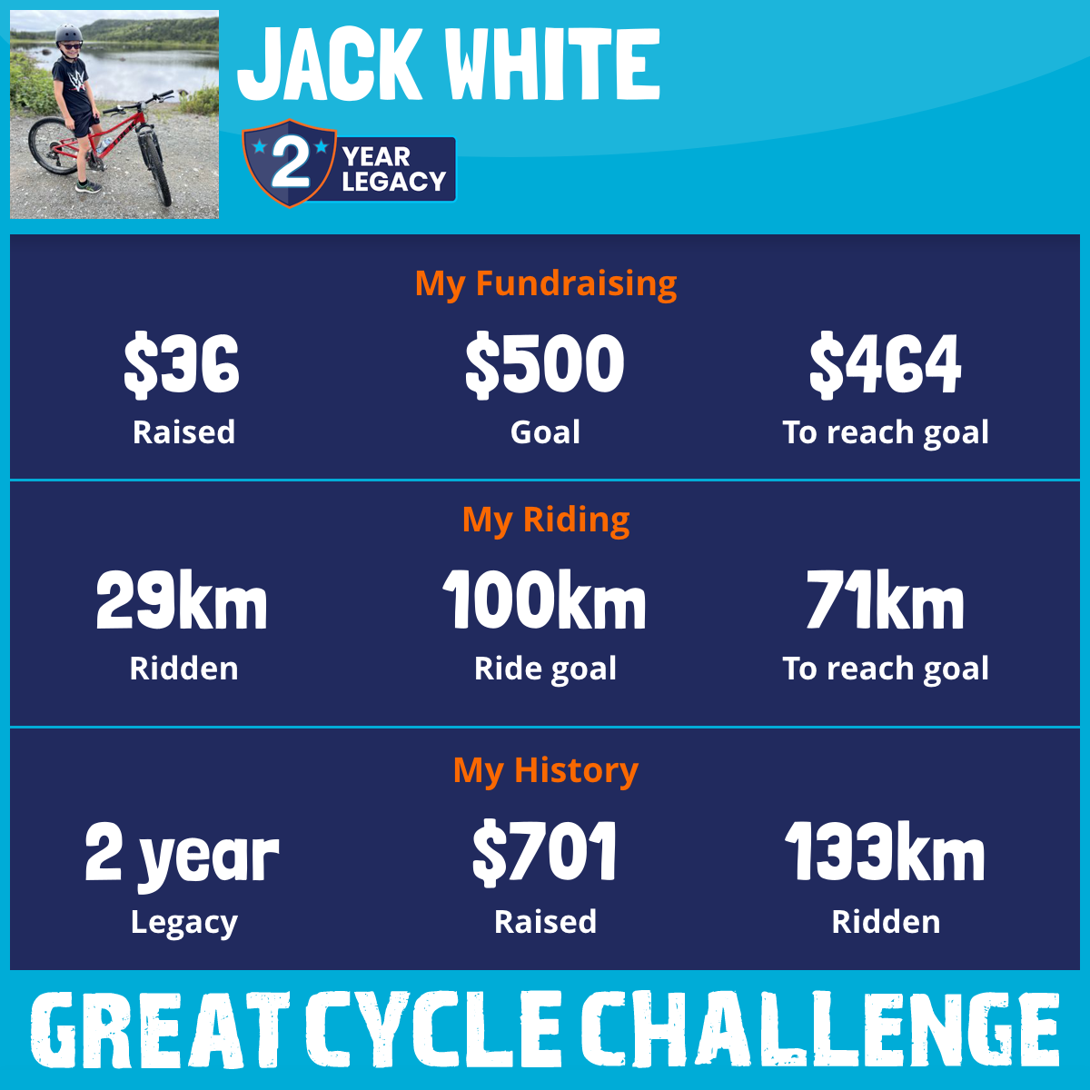 135 km Ridden$1,115 Raised2026