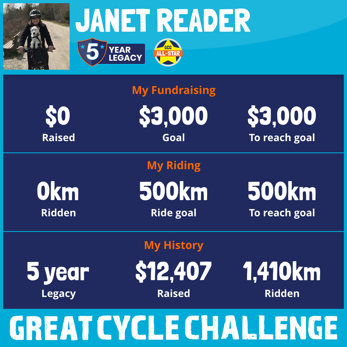 402 km Ridden$3,302 Raised2023
