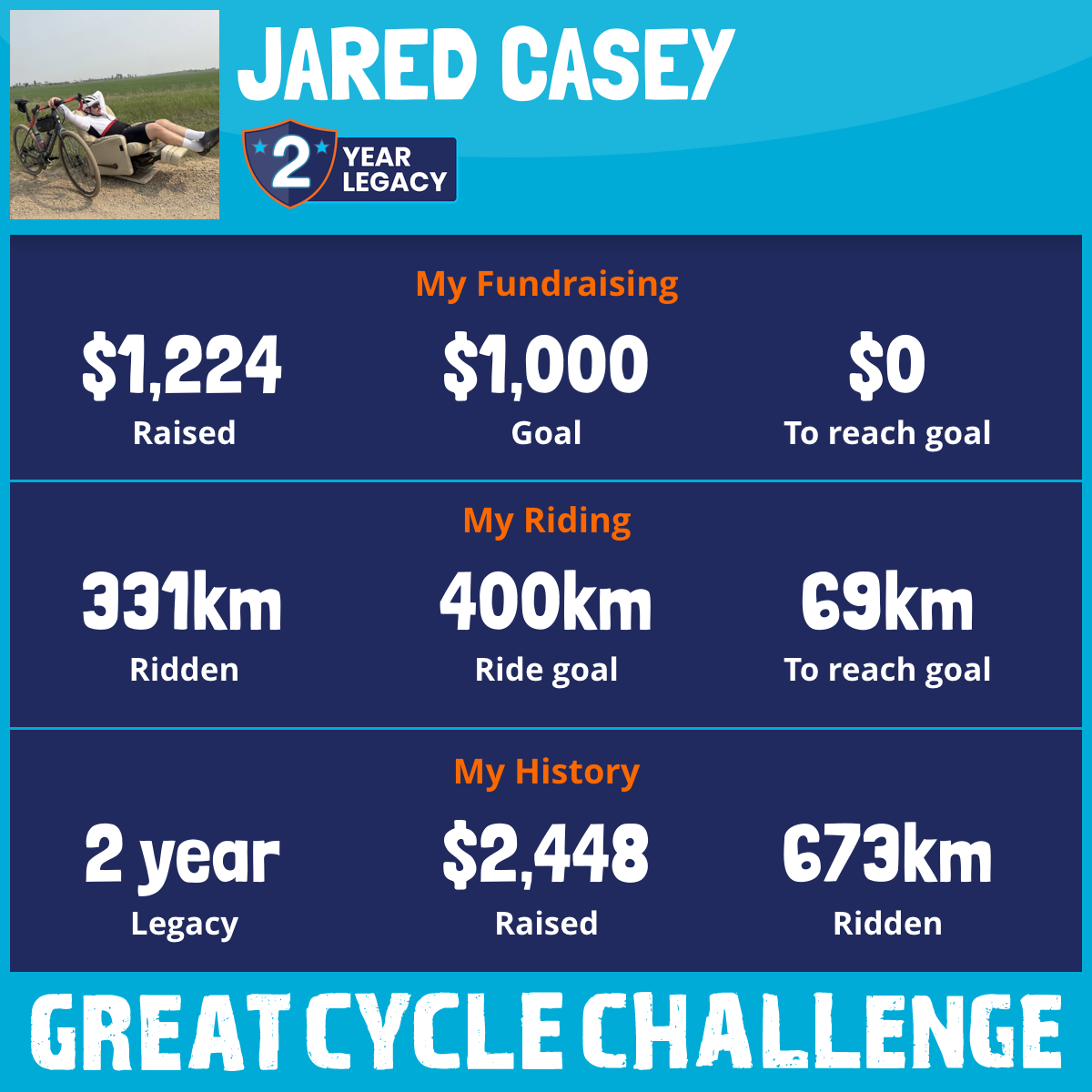 331 km Ridden$1,224 Raised2026