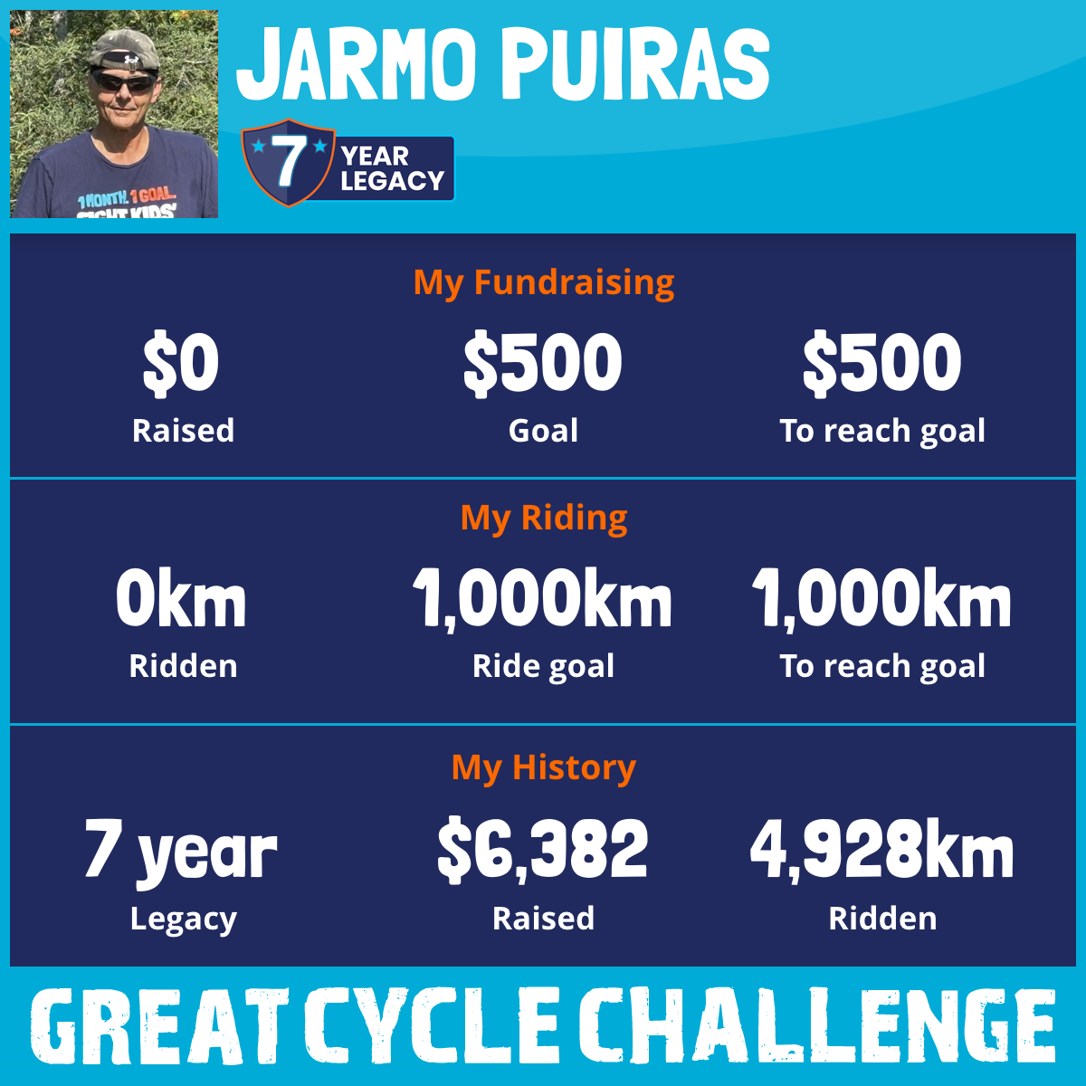 This August, I am again taking part in the Great Cycle Challenge to fight kids' cancer. Many of you have supported this fundraiser in the past. Thank you for your donations.