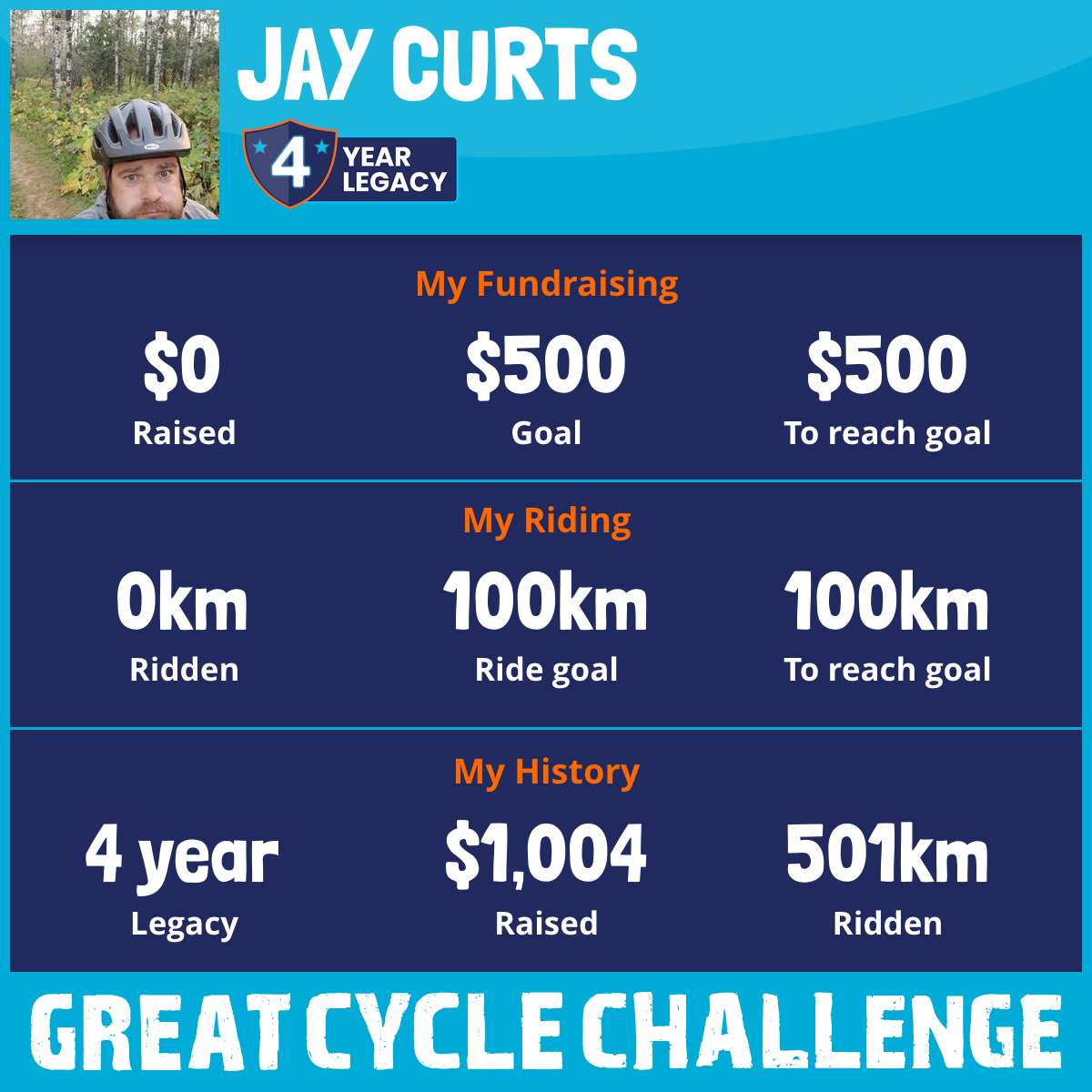 501 km Ridden$1,004 Raised2019