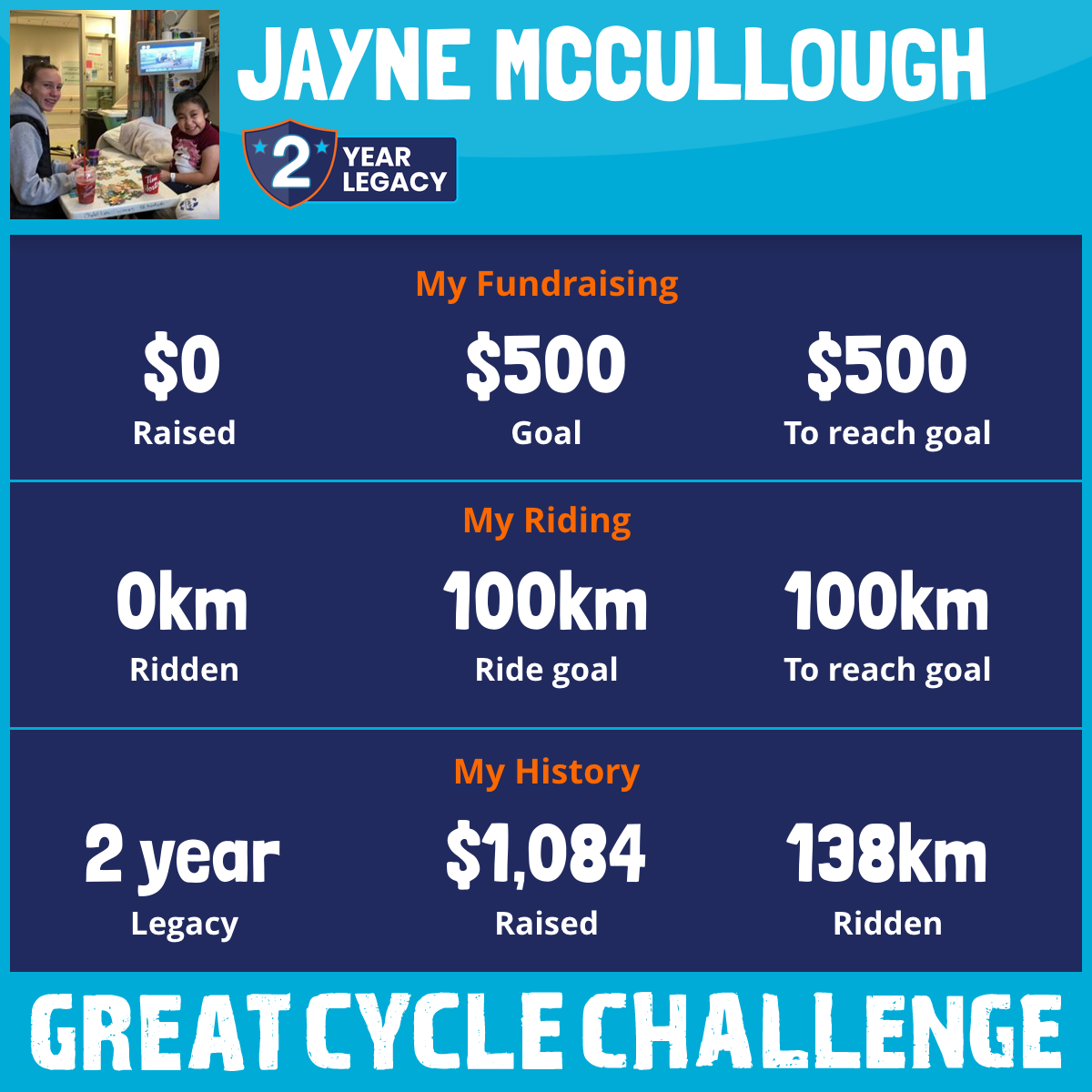 138 km Ridden$1,084 Raised2020