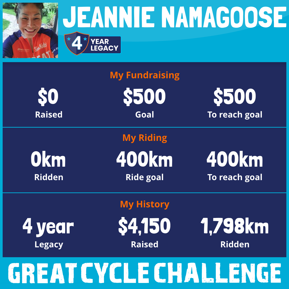 386 km Ridden$806 Raised2017
