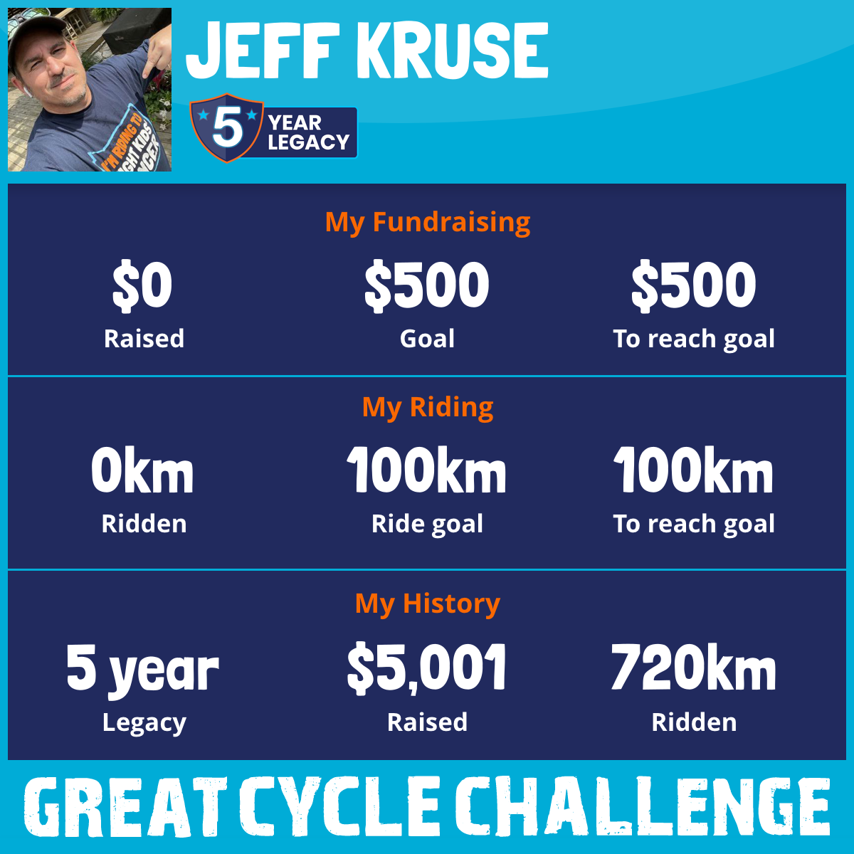 I am riding 100 km in memory of John Kruse. Please sponsor me and support my challenge to fight kids' cancer and save little lives.
