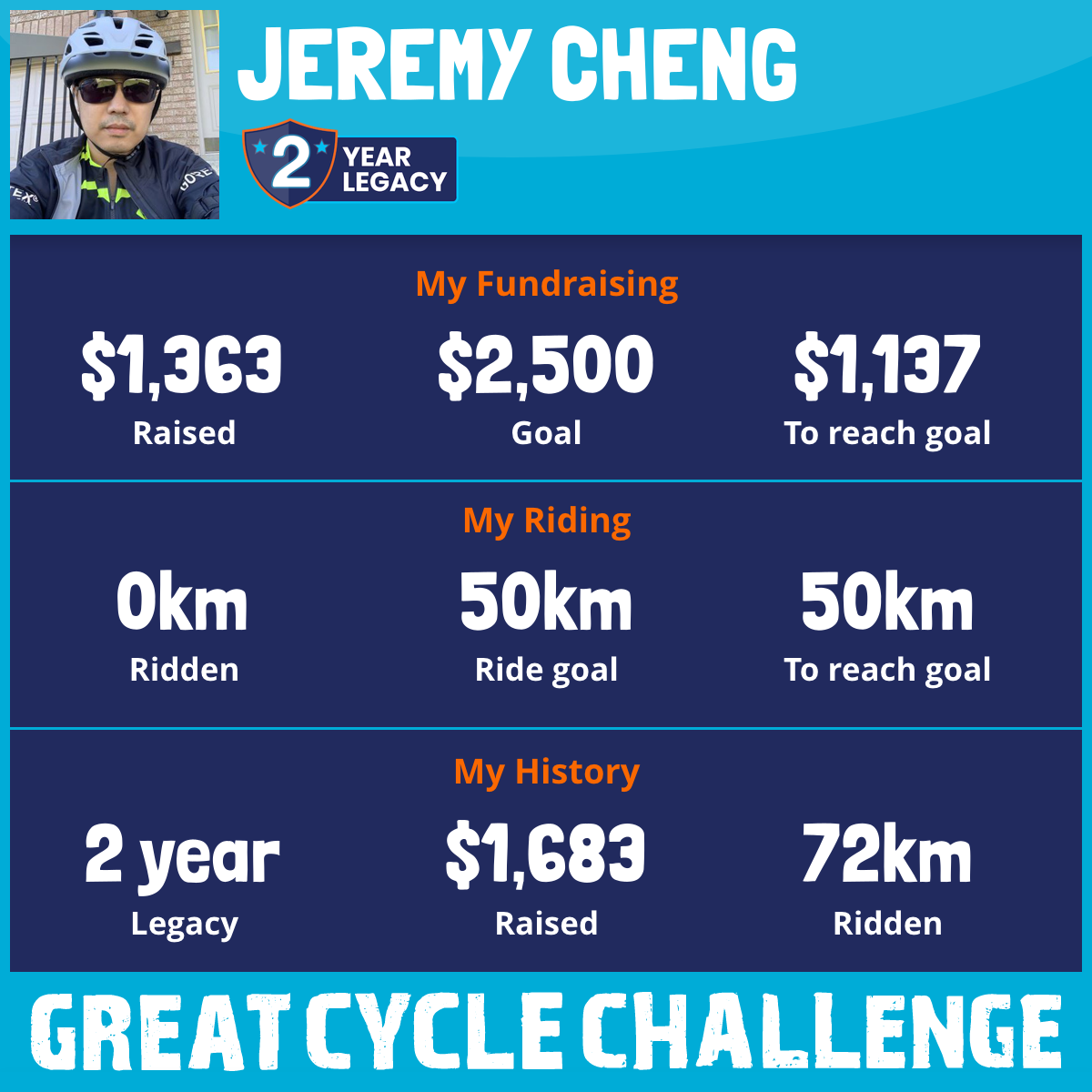 56 km Ridden$1,463 Raised2026