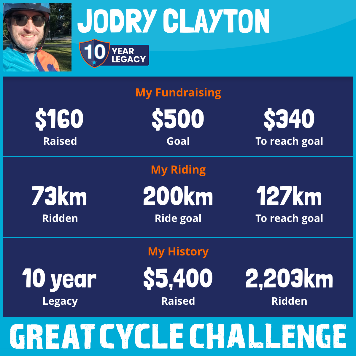 73 km Ridden$160 Raised2026