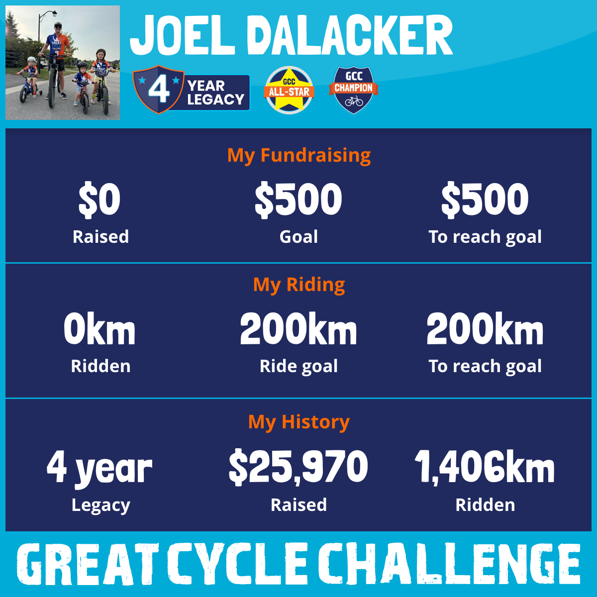 1,085 km Ridden$5,100 Raised2023