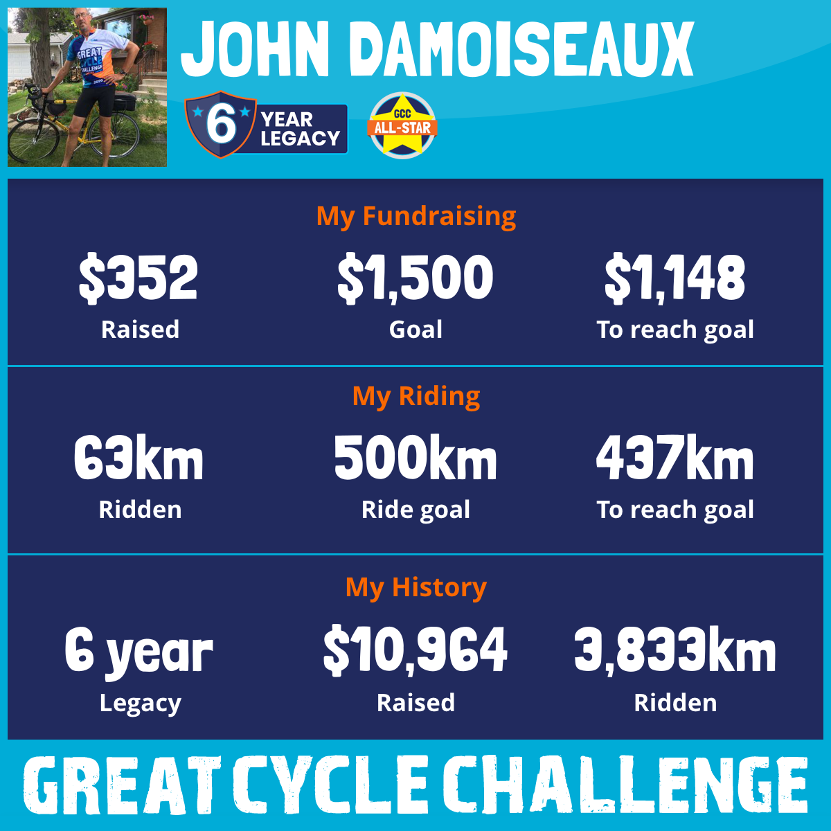 1,088 km Ridden$1,657 Raised2020