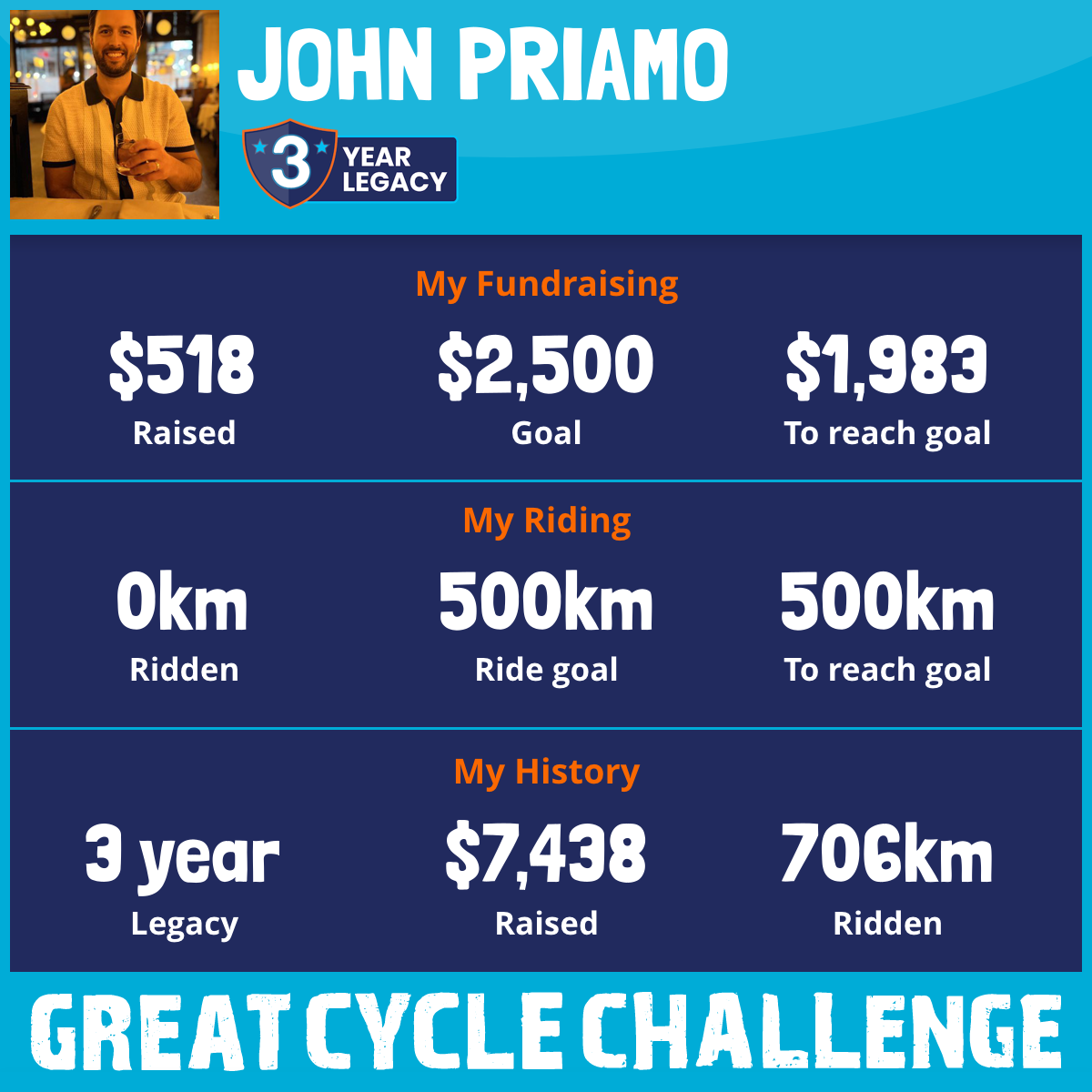 Please make a donation through my fundraising page to support my challenge and join me in the fight to save big little lives. For every $10 above $2500 I will ride an extra km above my 500 km goal.