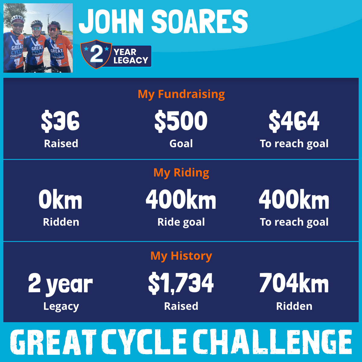 704 km Ridden$1,698 Raised2024