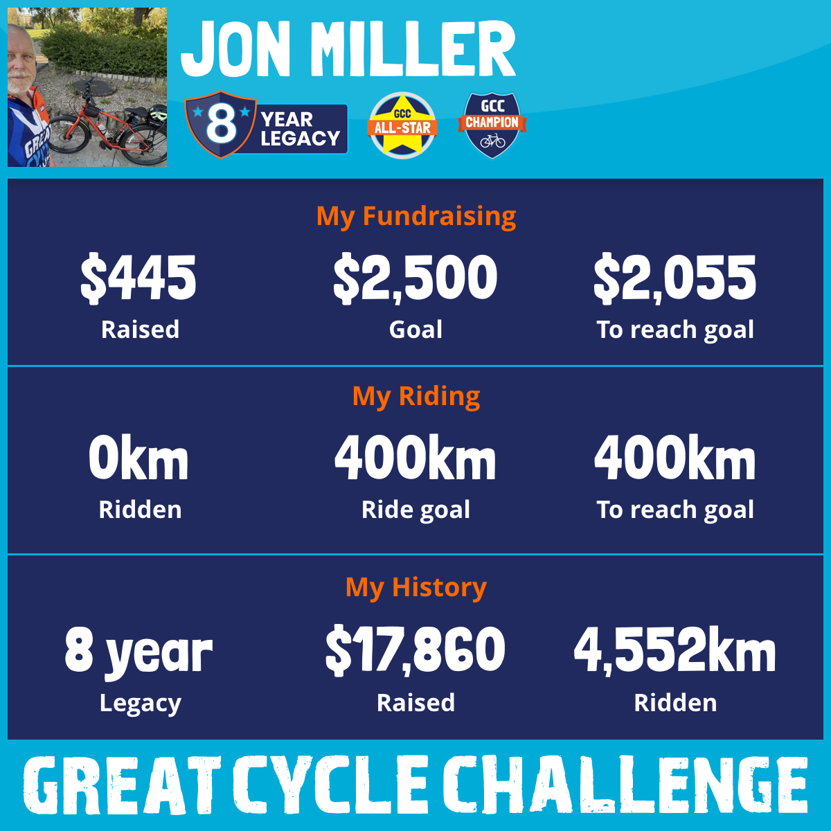I am once again taking part in the Great Cycle Challenge. You can help me attain those goals in 2025 for my 8th year.