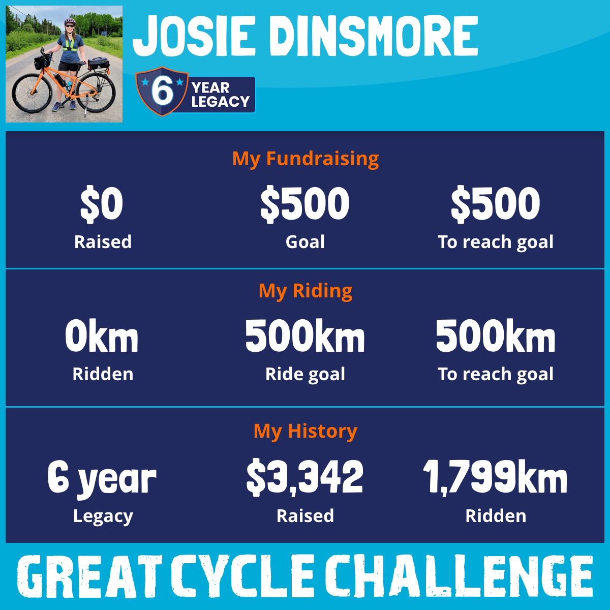 I've raised $0 My goal is $500 Donate Now