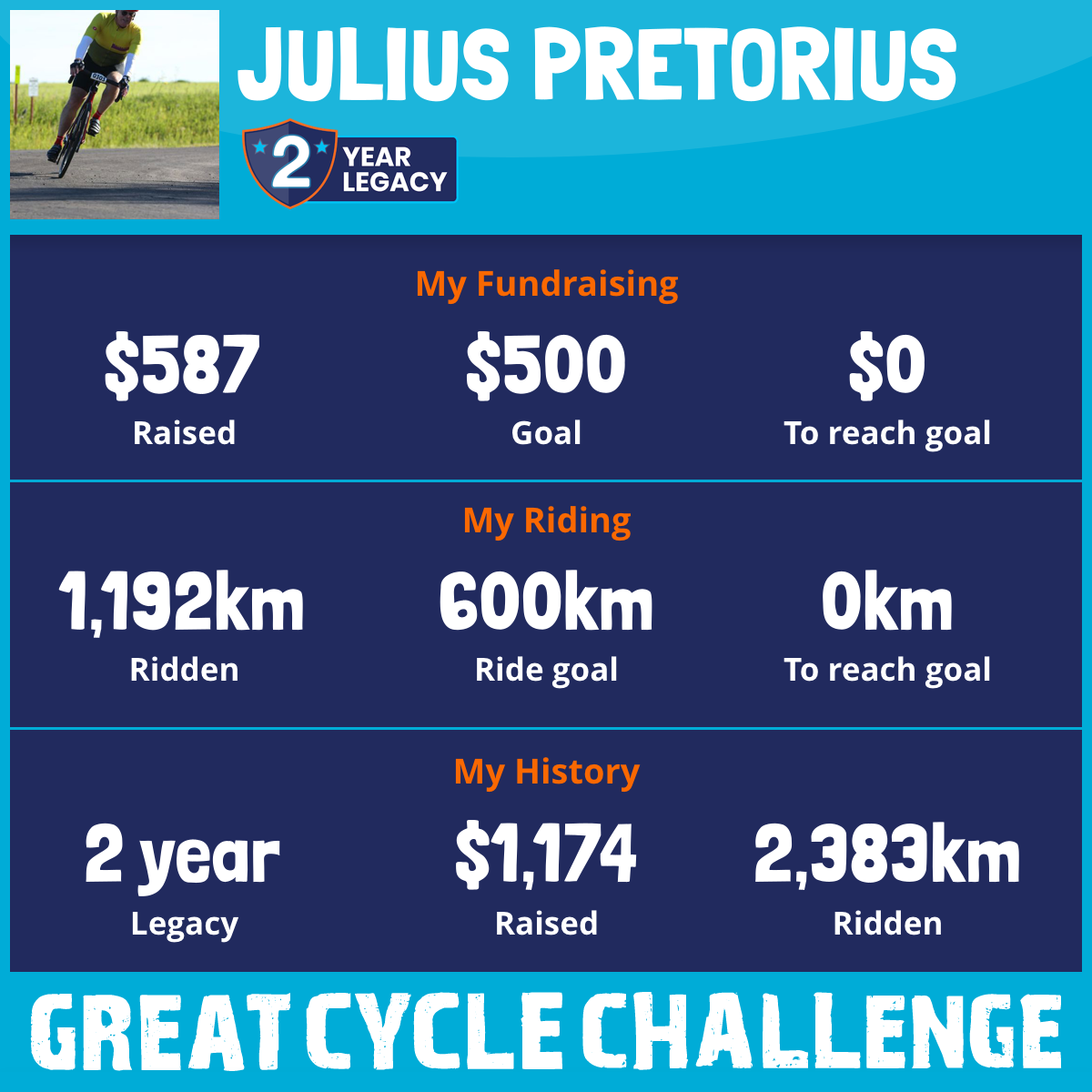 1,192 km Ridden$587 Raised2026