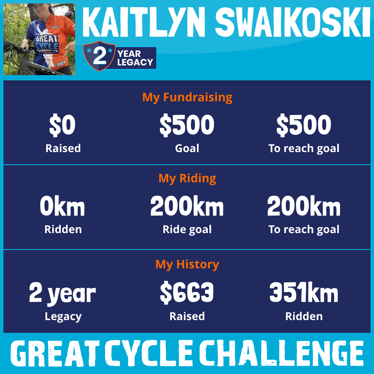 351 km Ridden$663 Raised2024