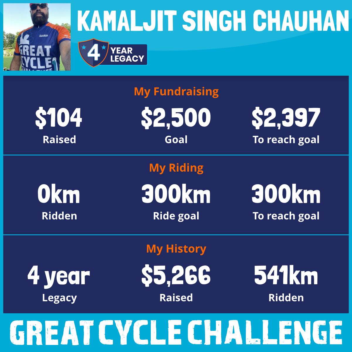 302 km Ridden$2,816 Raised2026