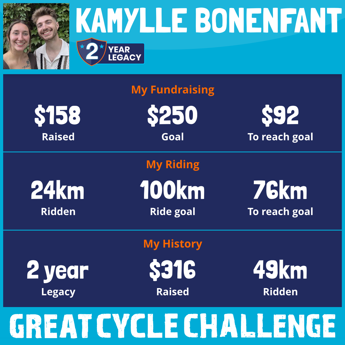 24 km Ridden$158 Raised2026