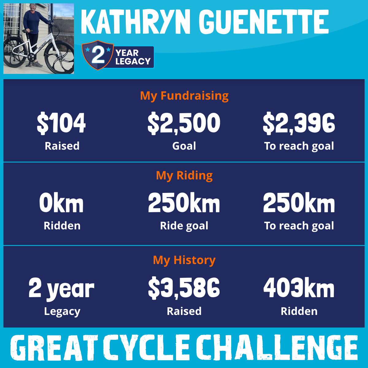 403 km Ridden$3,482 Raised2024