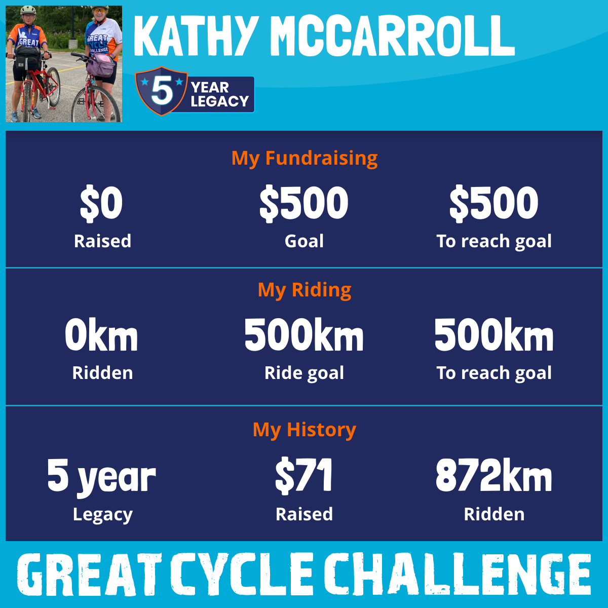 I am riding 500 km for Keith Mccarroll. Please sponsor me and support my challenge to fight kids' cancer and save little lives.