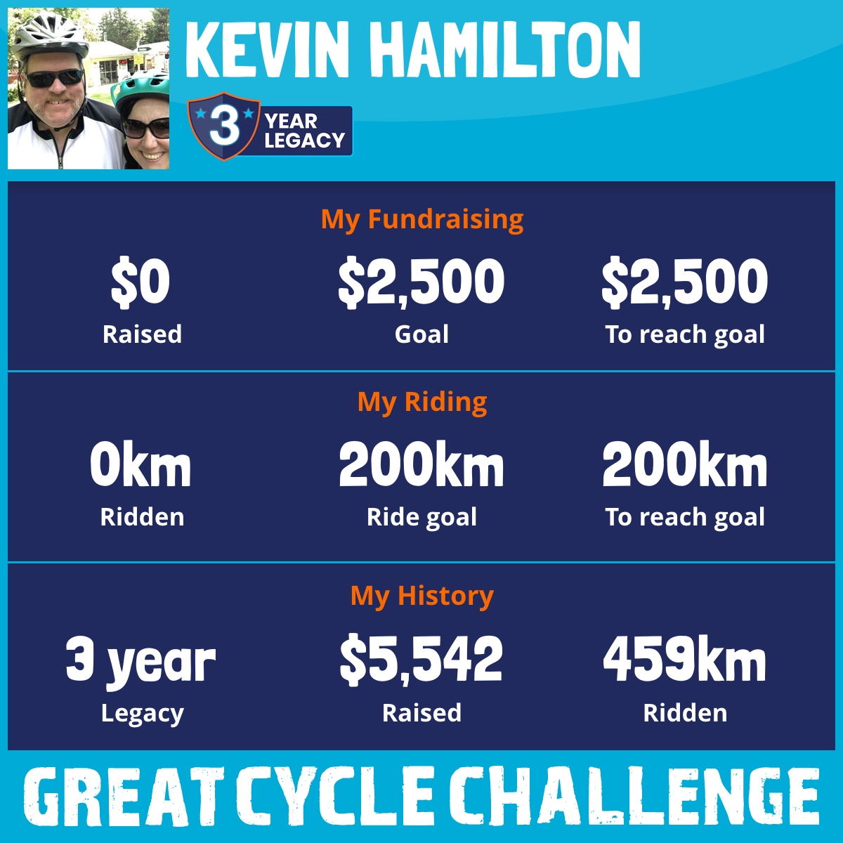 257 km Ridden$3,407 Raised2021