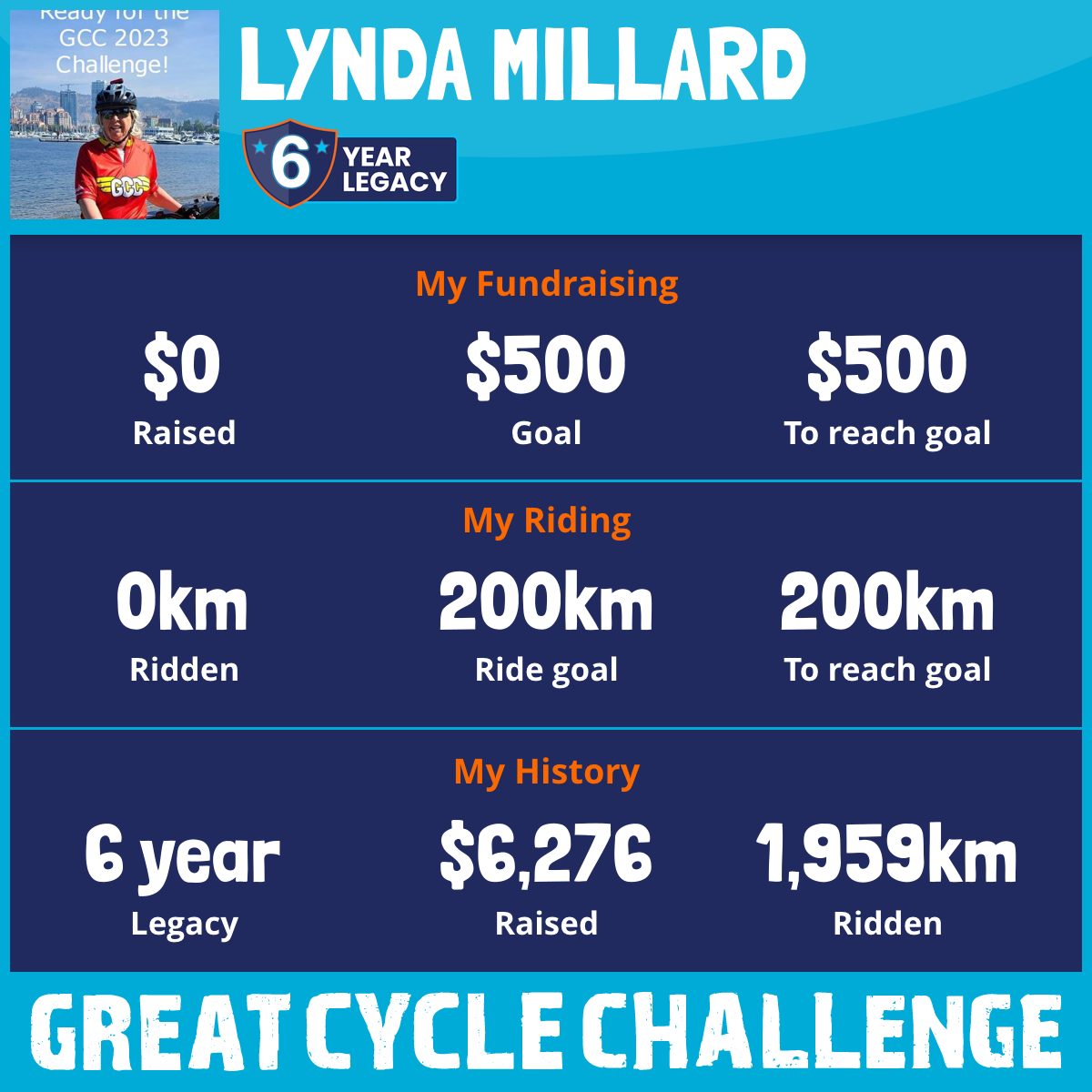 This year, 2024, will be the fifth year I have participated. To date, I've ridden 1959 km and raised $6,276.00, and I'm 76 years old.