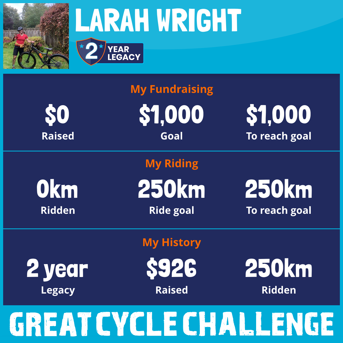 250 km Ridden$926 Raised2023