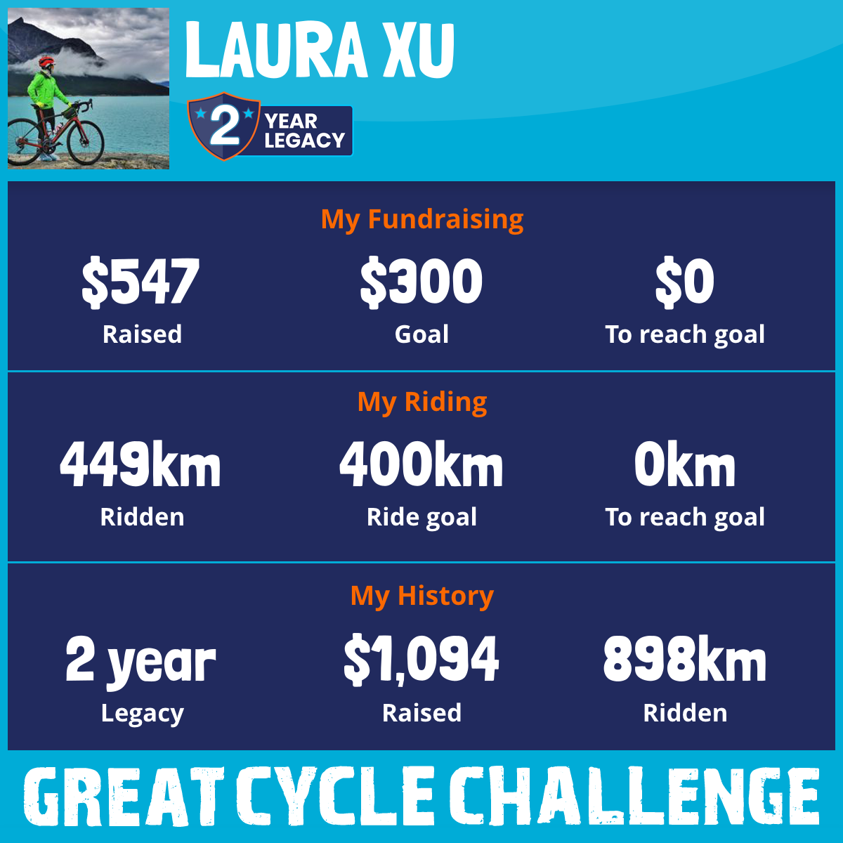 449 km Ridden$547 Raised2026