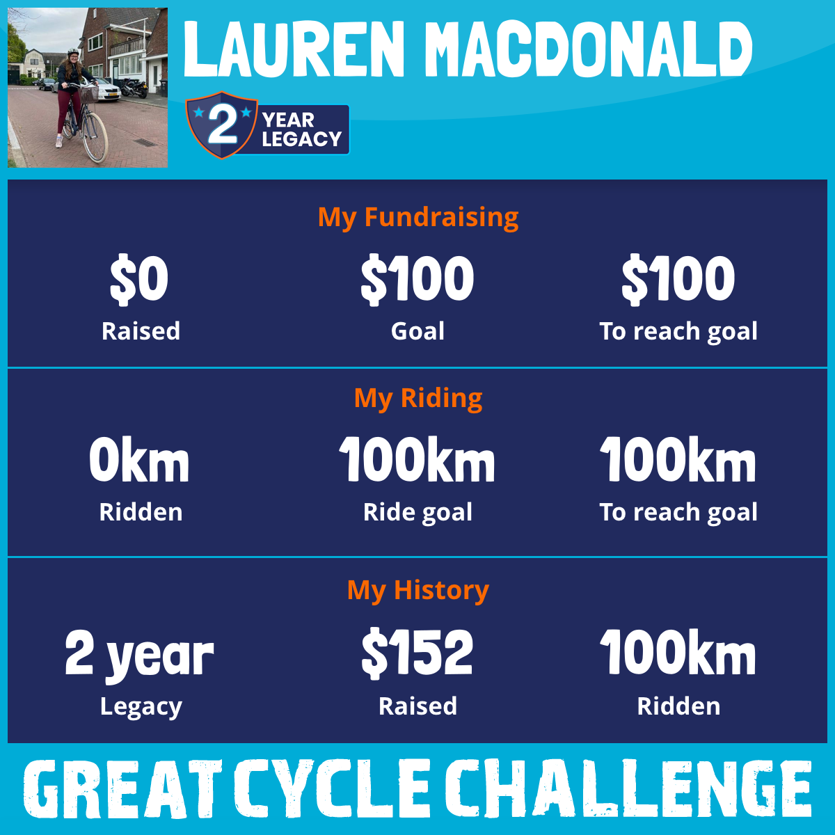 100 km Ridden$152 Raised2022