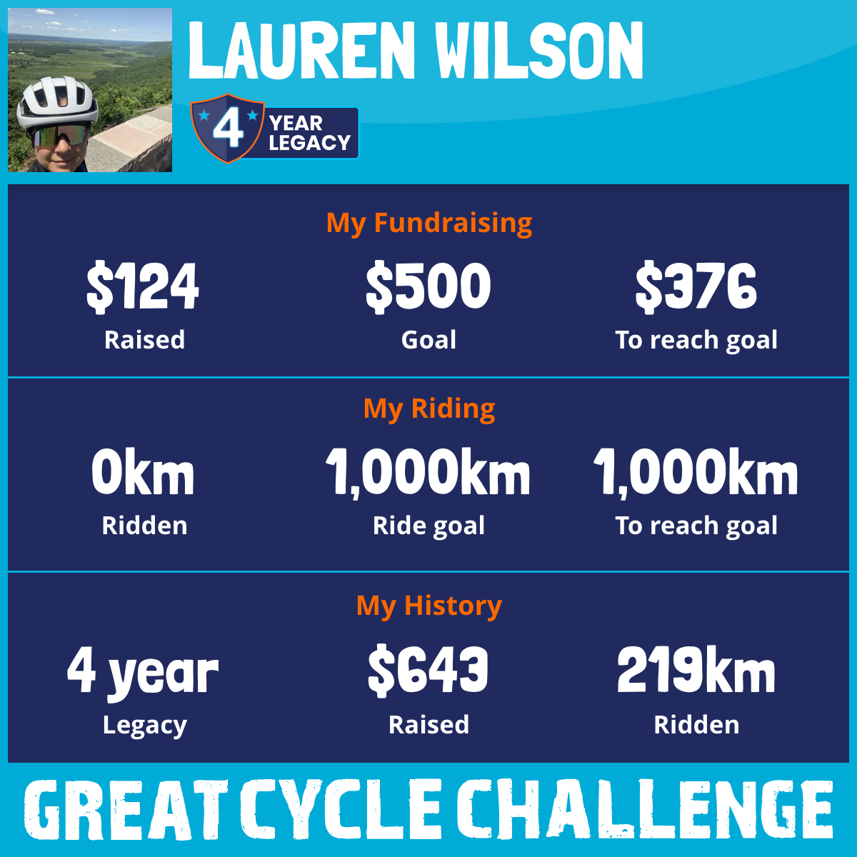 220 km Ridden$124 Raised2026