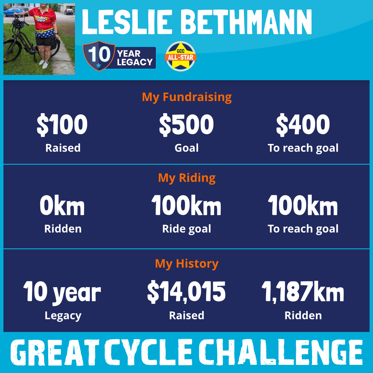 150 km Ridden$1,603 Raised2023