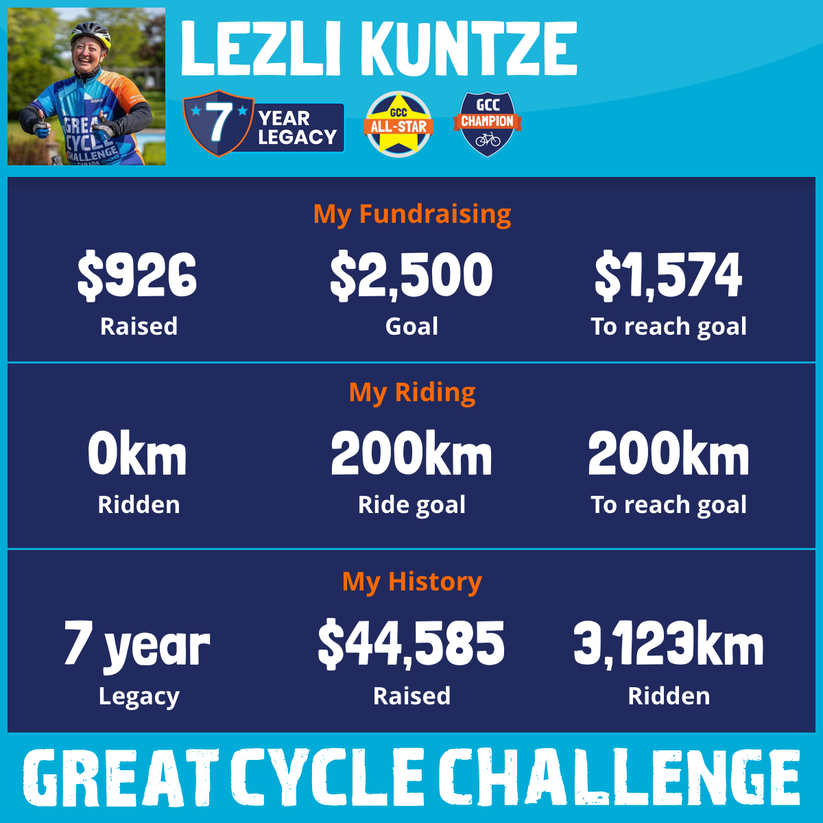 830 km Ridden$7,229 Raised2020