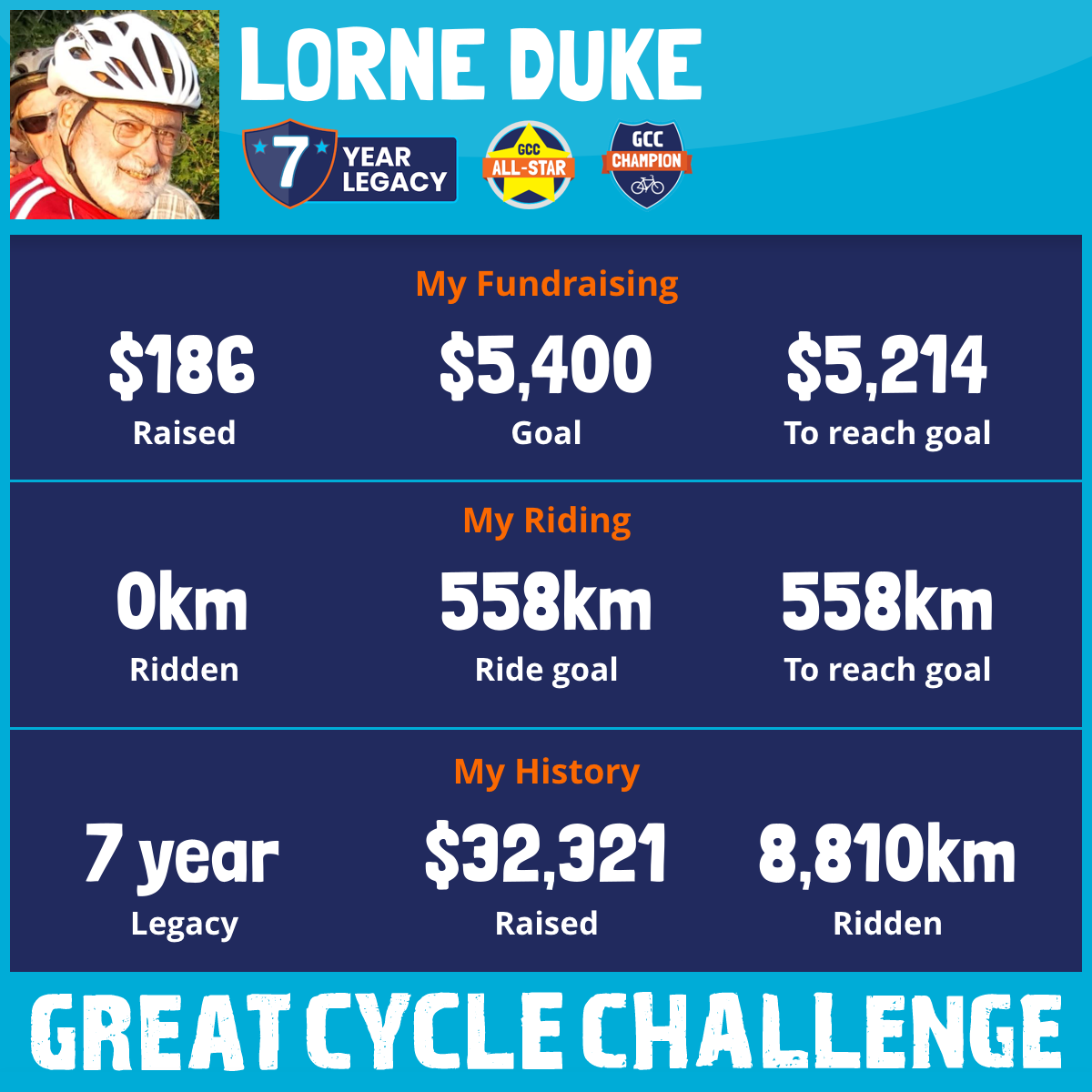 This August I am participating in the Great Cycle Challenge 2025 to fight kids' cancer! This is my seventh Challenge.