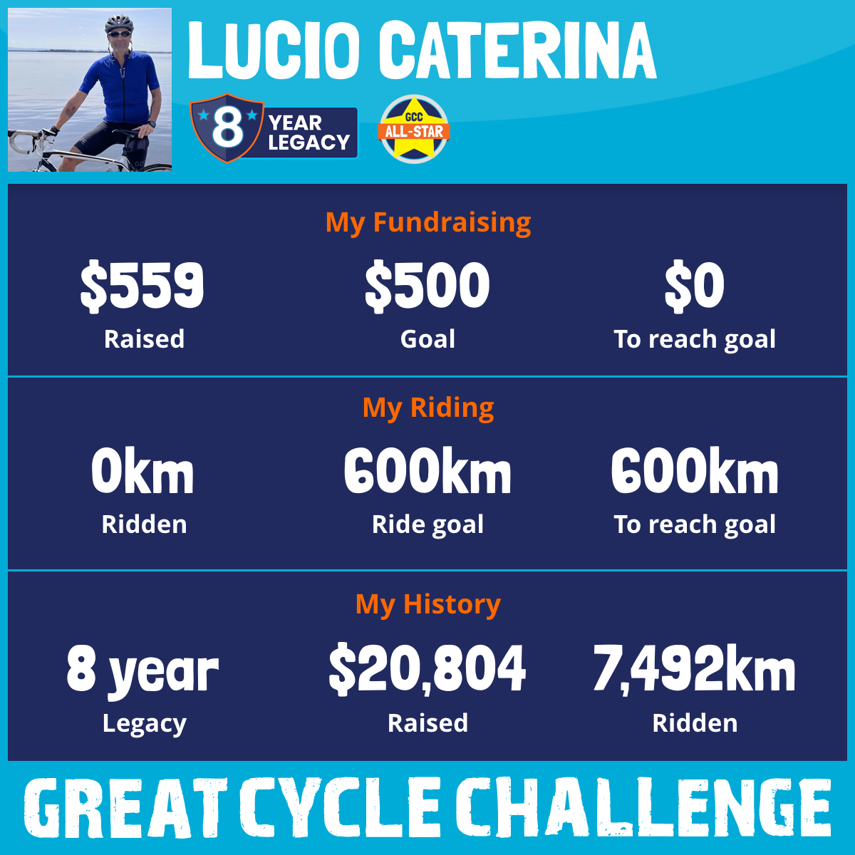 1,034 km Ridden$3,686 Raised2023