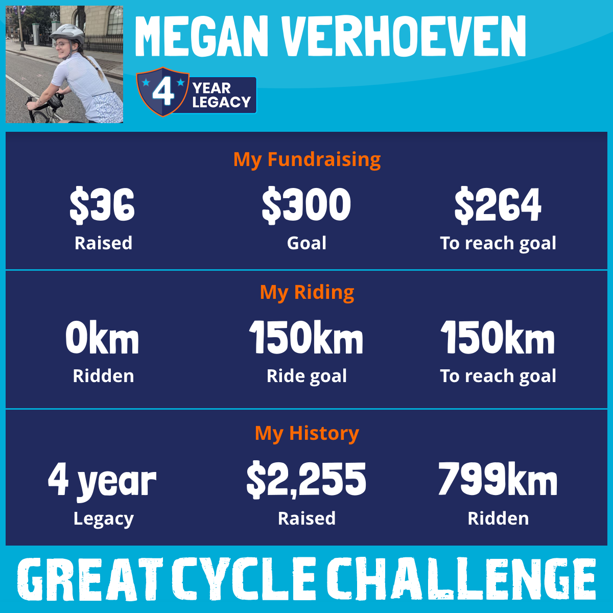 Last August I rode 312km and raised $866! So thank you again to all of my sponsors.