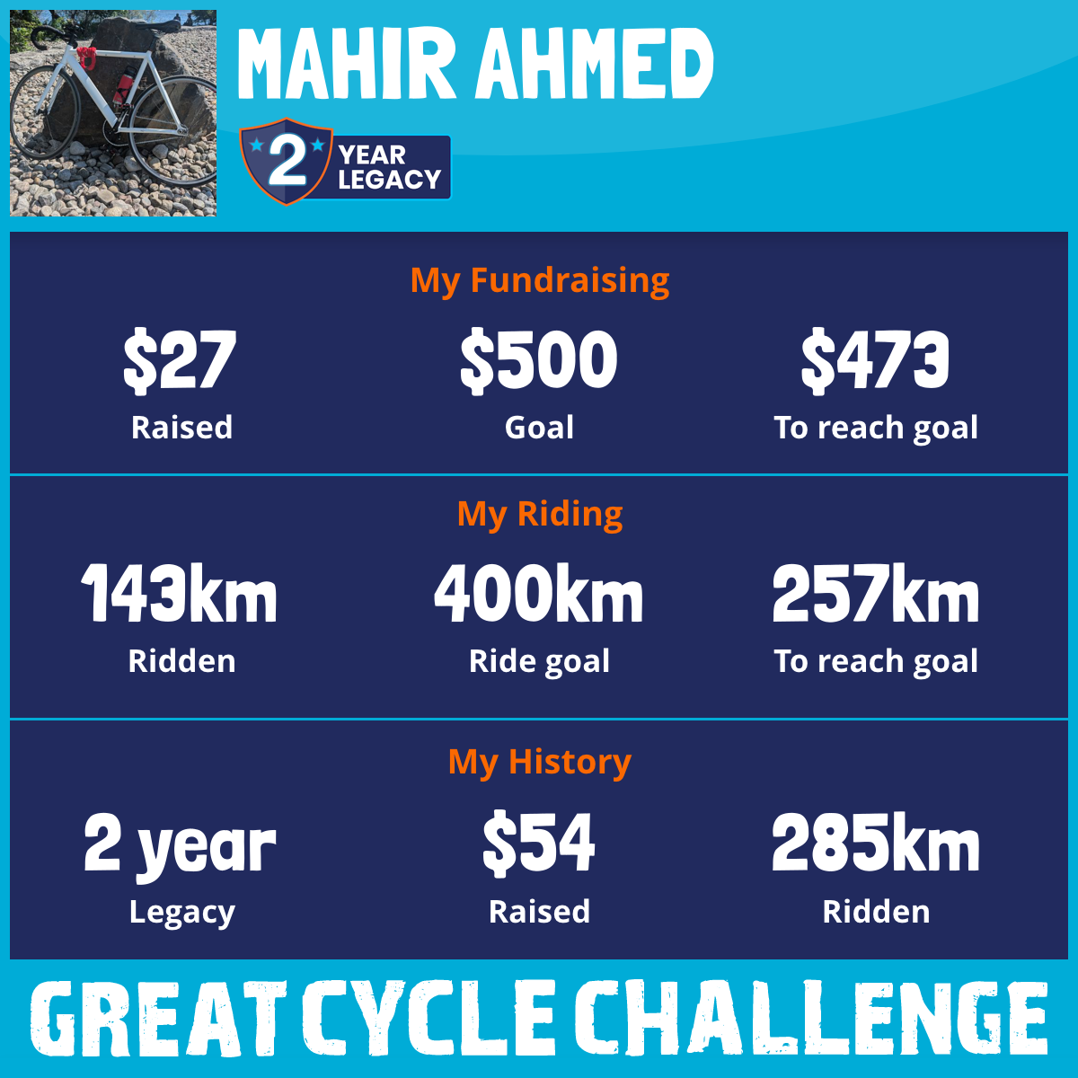 143 km Ridden$27 Raised2026