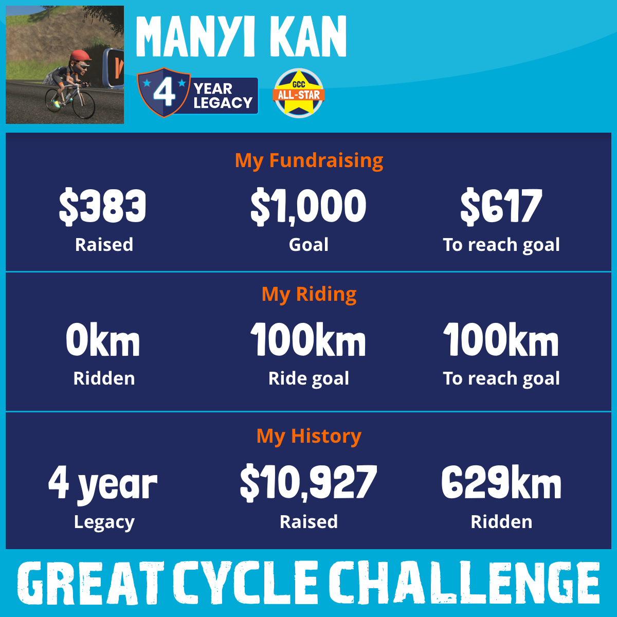 100 km Ridden$3,139 Raised2025