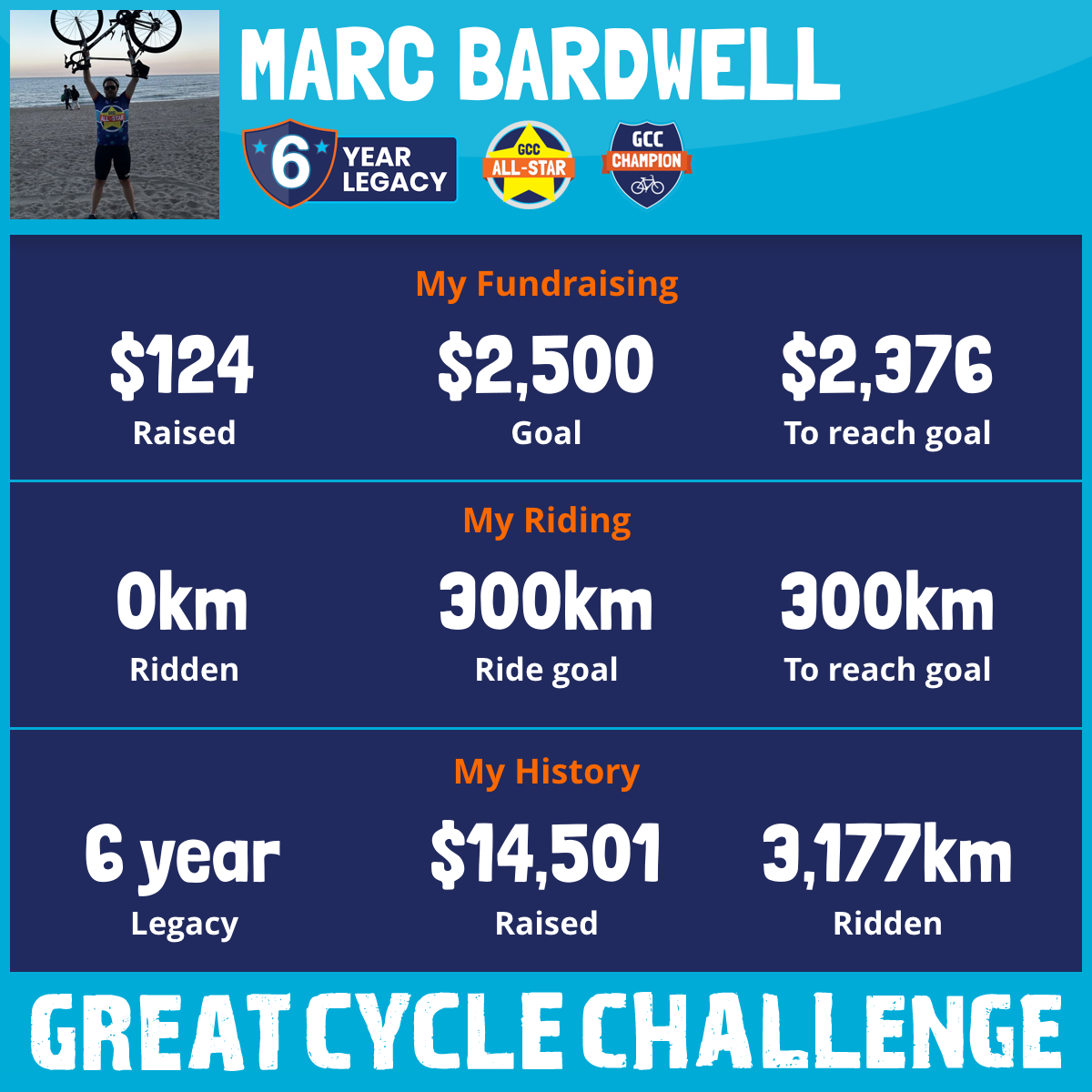557 km Ridden$3,655 Raised2023
