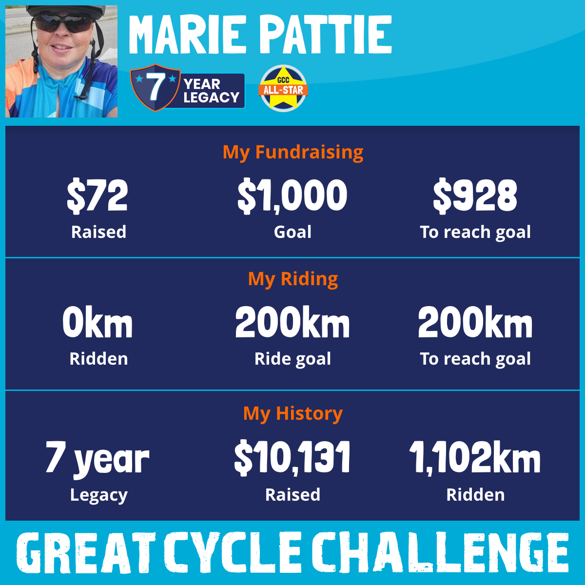 186 km Ridden$5,790 Raised2023