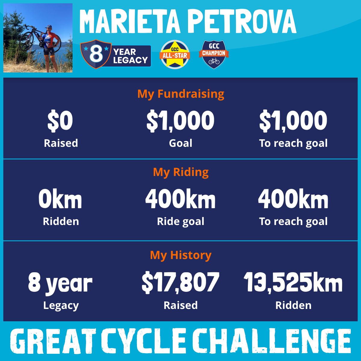 I am embarking on the journey of the Great Cycle Challenge this August, driven by an unwavering commitment to combat childhood cancer. Having triumphed over a 1024 km goal last year, I am now setting my sights on a target of 600 km throughout August 2025.