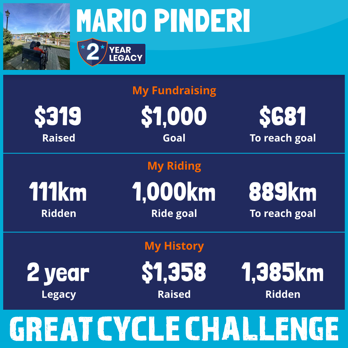 1,274 km Ridden$1,039 Raised2024