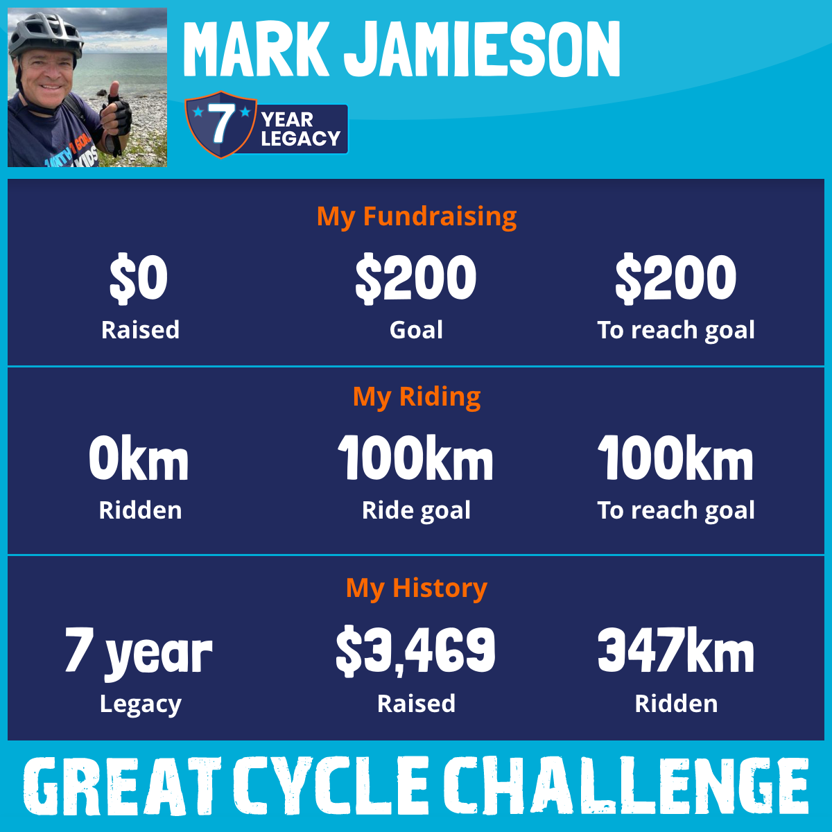 Thankyou to everyone who has supported me this summer for my GCC ride to support childhood cancer research. I sincerely appreciate everyone’s generous donations and kind words of support!! Mark Jamieson