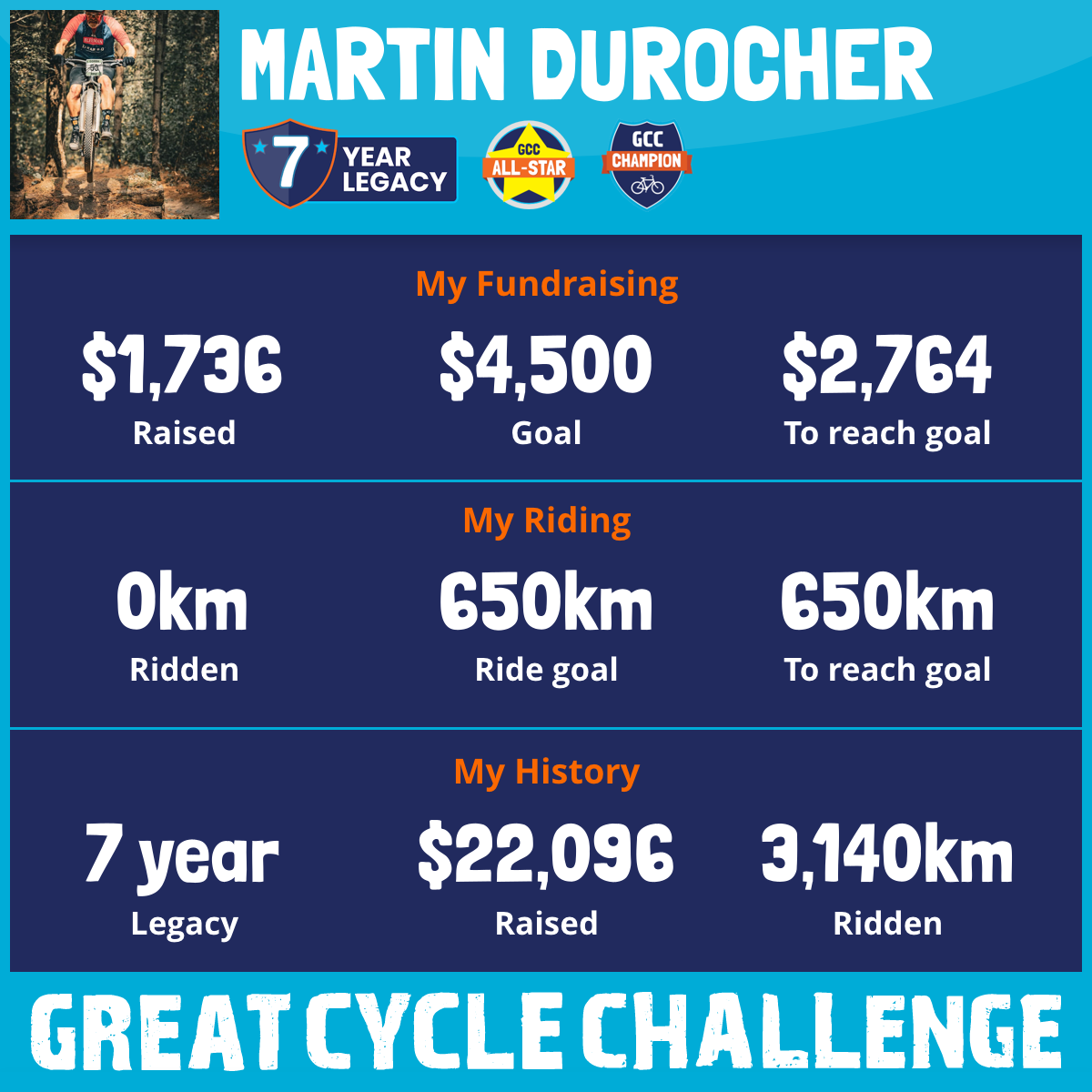 581 km Ridden$5,320 Raised2023