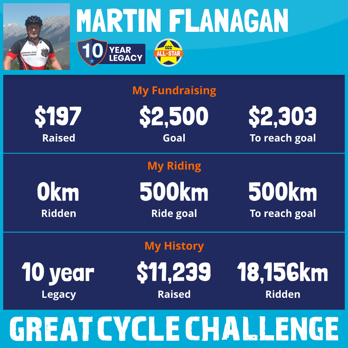 This is my 11th year and I am taking part in the Great Cycle Challenge to fight kids' cancer.