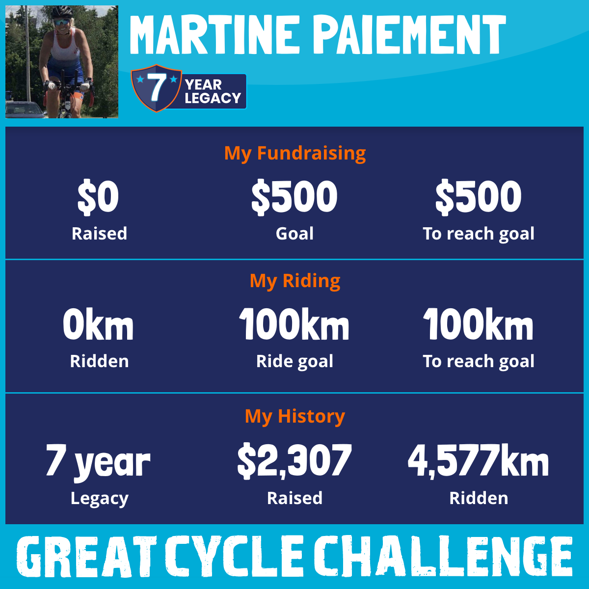 I am riding 100 km in memory of Flavie & maman & mon frère. Please sponsor me and support my challenge to fight kids' cancer and save little lives.