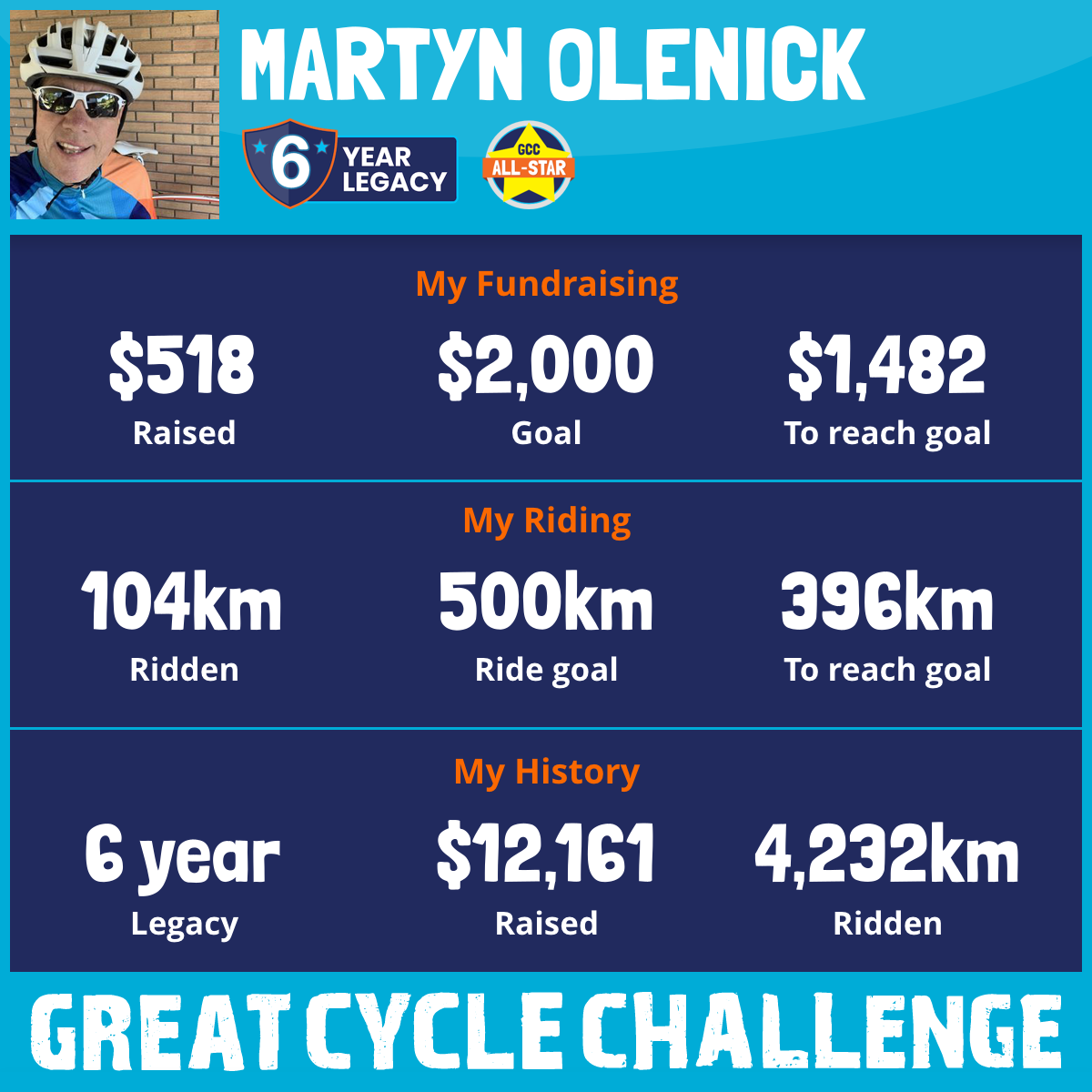 251 km Ridden$2,703 Raised2022