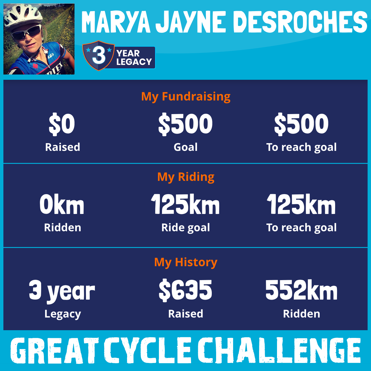 350 km Ridden$535 Raised2017